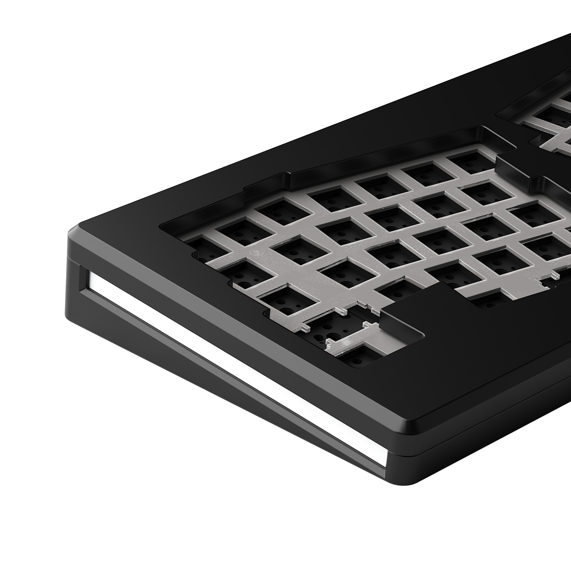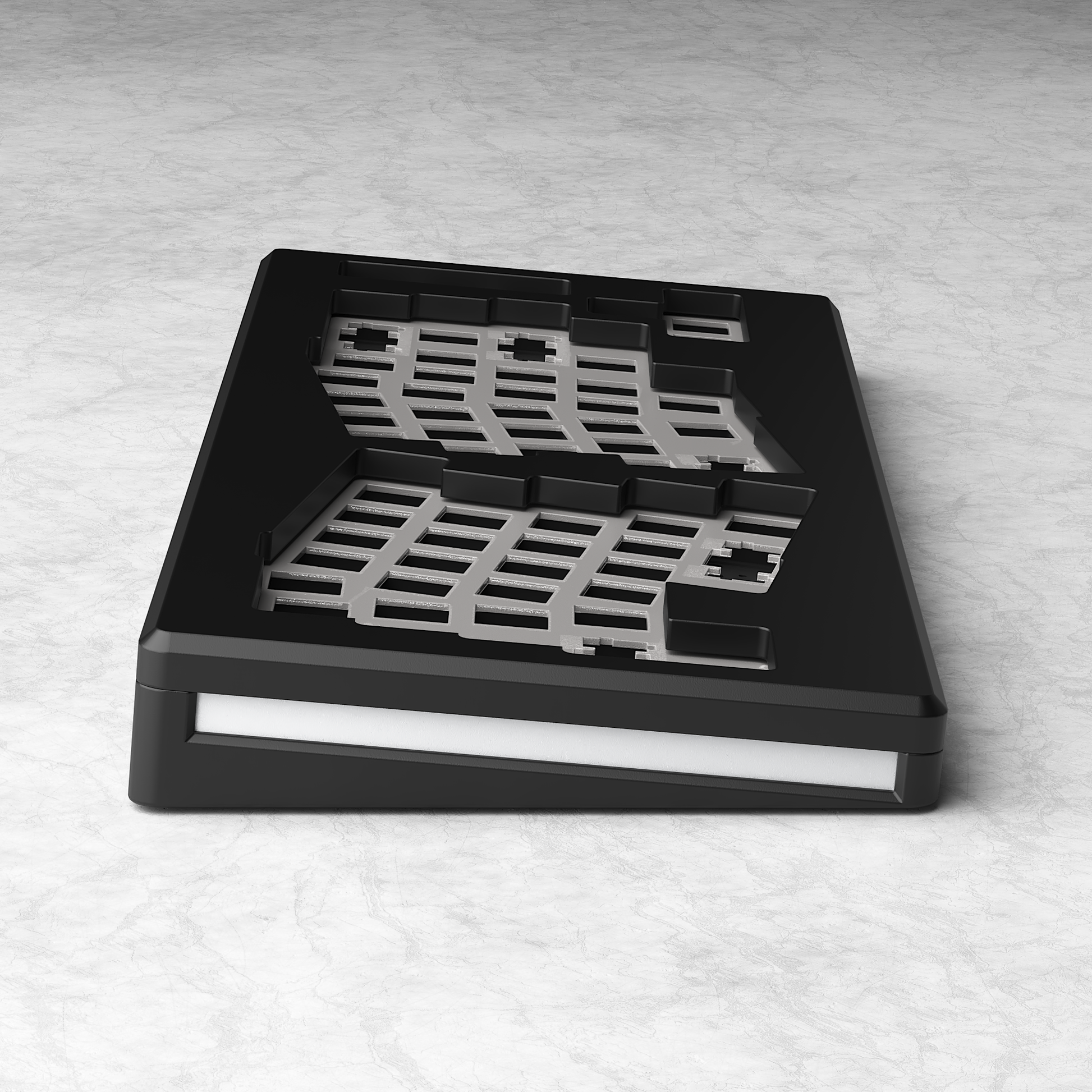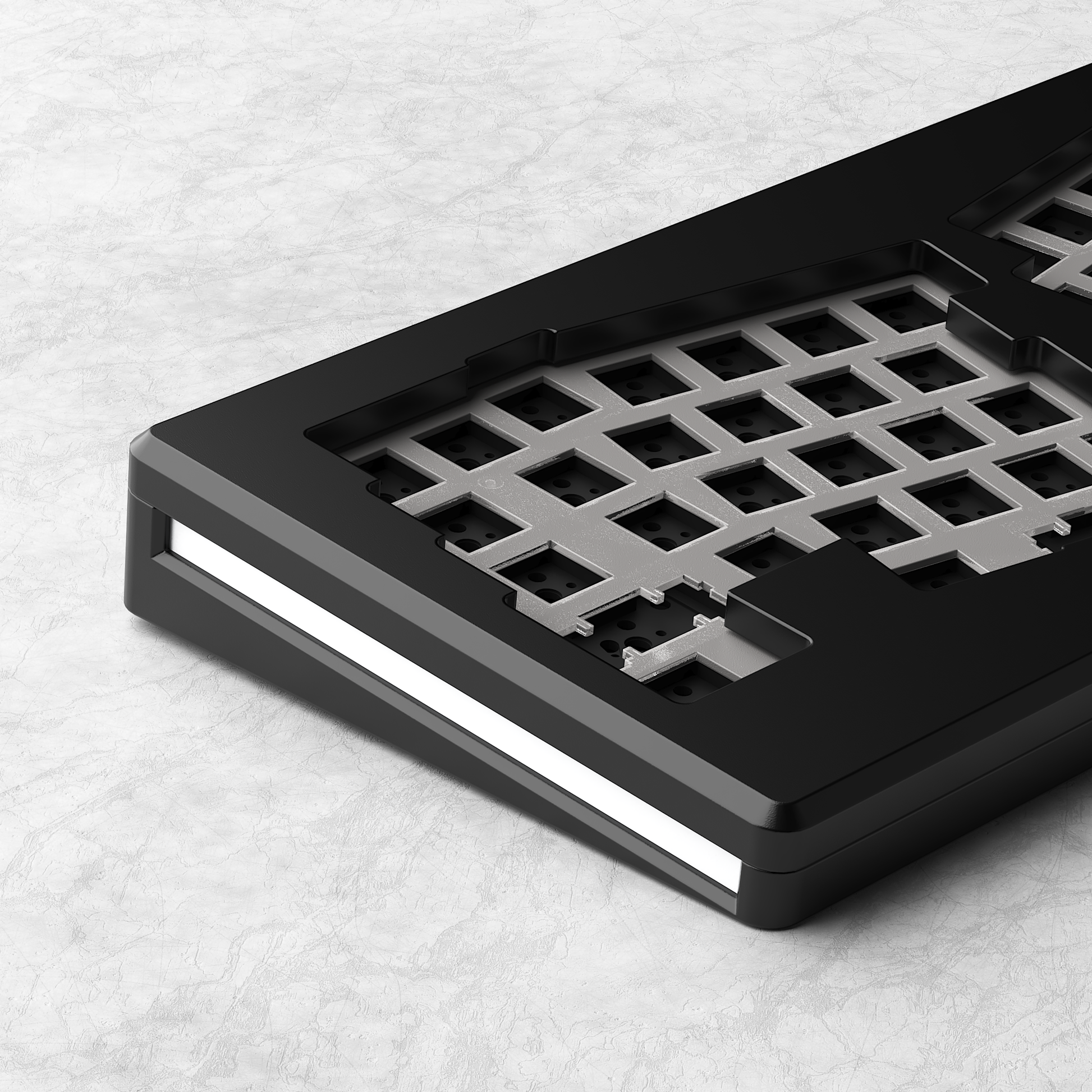 This layout provides a more ergonomic typing experience and because Monsgeek kept the bottom line of the case straight, you'll be able to use a regular wrist rest!